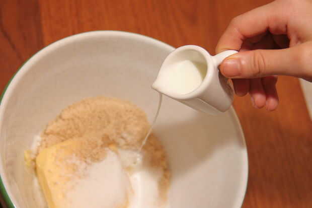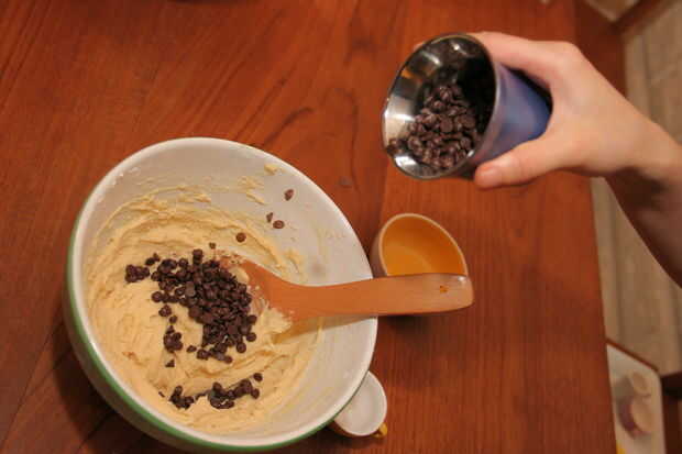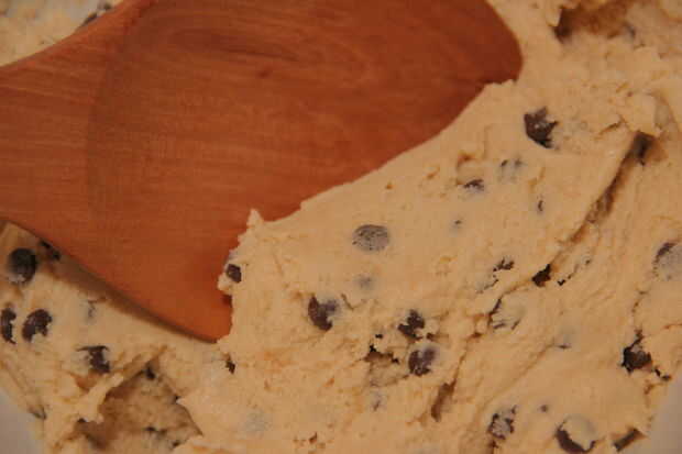 Combinar la mantequilla y el azúcar en un tazón, seguido por la leche, vainilla. Brutalmente la mezcla hasta obtener una consistencia cremosa. Mezclar la harina hasta que se forme masa. Por último, perno prisionero masa para galletas con chispas de chocolate mini tantos como quieras! (más es siempre mejor)
