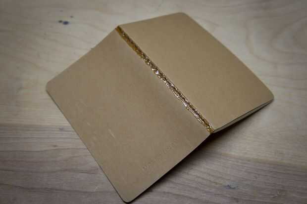 Cubrir la columna vertebral (exterior e interior) con pegamento de cianocrilato (pegamento loco). Esto encierra el atascamiento cosido junto para que nada revela una vez que cortamos el libro a su tamaño. Deje que el pegamento set mientras terminas el siguiente paso.