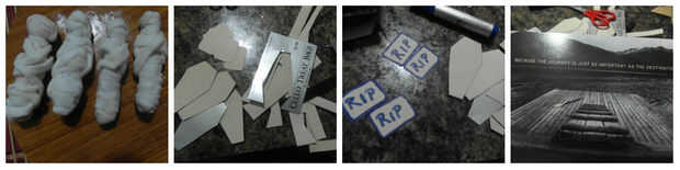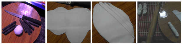 Tomar un palo de dedo de chocolate y con uno de la tira hasta tapa completamente el rodillo y se ve como una momia.