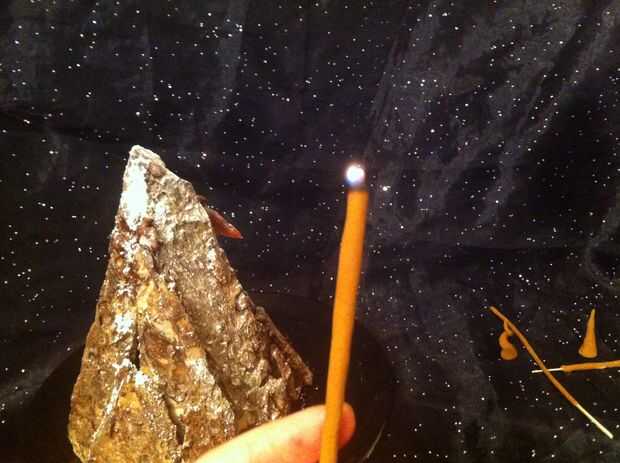 Cuando estés listo para pantalla/servir a la montaña solitaria, encuentra su especial incienso de canela y un mechero. Asegurarse de que sus palos no demasiado largos para caber en la montaña. Si son, quemarlos hasta que están lo suficientemente cortos y coloque el extremo de una pieza de barro chocolate en un plato.