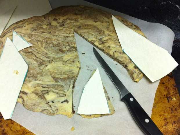 No trate de cortar la galleta antes de haber horneado la masa. Masa para galletas soplos cuando hornea; deforme las piezas. Use un buen y afilado cuchillo para cortar suavemente alrededor de las formas de papel sobre la galleta al horno caliente.