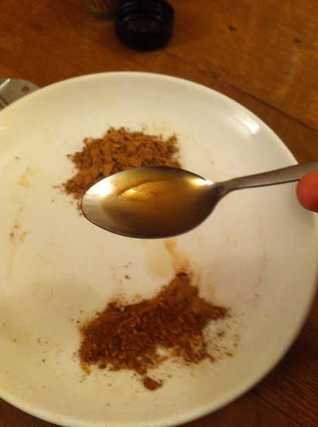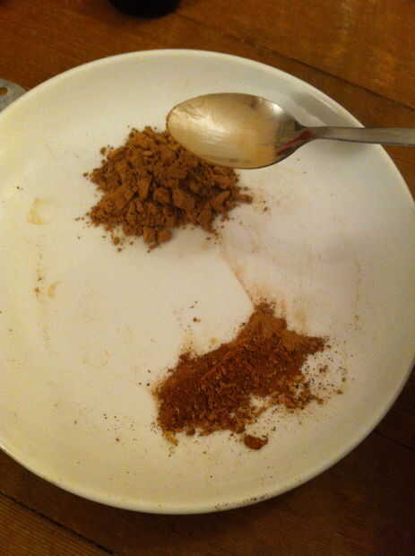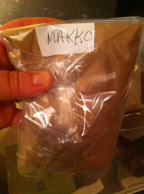 Para estas cosas, usé aproximadamente una parte especia mezcla tres partes de makko polvo. La mezcla de especias era sobre todo canela o casia en polvo. Las otras cosas era agregar profundidad e interés. Aquí están las notas de olor que hice hasta ahora. Olor es muy subjetivo, de todos modos.