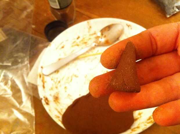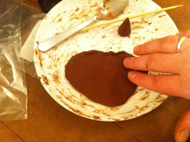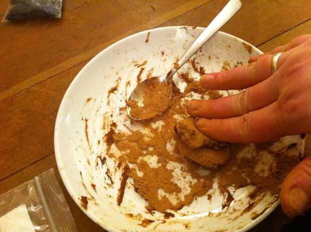 Mezclar las especias con el makko polvo. Añadir tintura de ámbar gris si tienes algunas y quieres. Agregue el agua un poco a la vez. Amasar la mezcla por unos minutos, luego forma de conos o rodar en troncos delgados y los registros en astillas muy finas de bambú del rodillo.