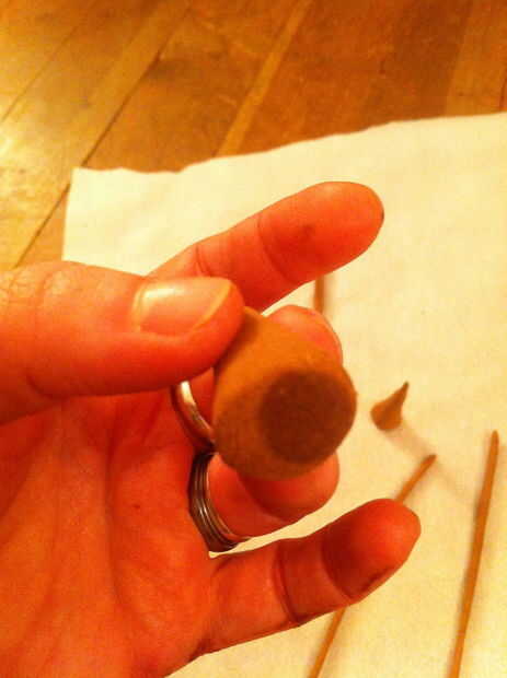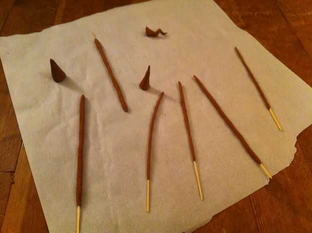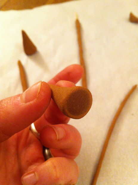 Usted puede hacer bastones o conos; usted necesitará de bambú para los palillos. Sólo utiliza un pincho de bambú y convenció a Josh para cortar en astillas muy finas mientras que me metía en sus suministros de incienso.