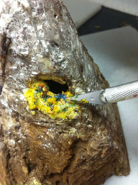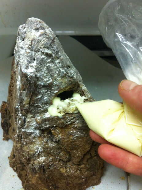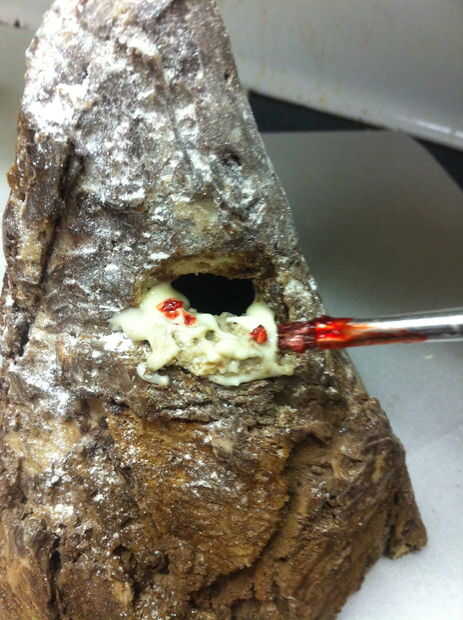 Rociarlo con el agua. OH NOEZ EL CHOCOLATE AGARRÓ! Eso es lo que usted quiere. Chocolate derretido puede parecer mojado, pero no tiene agua en ella. Agregar un poco de agua hace grupo y endurecer. También te fuerza el chocolate a florecer un poco ya que se seca (lo que significa la manteca de cacao no está en la formación de cristales estables y algunos de los sale a la superficie del chocolate, haciéndolo parecer calcáreos y secos). Esto puede parecer terrible en una barra de chocolate, pero es grande para el lado de una montaña.