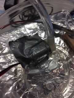 En este punto tienes que conectar el tubo a la bomba de agua y cinta adhesiva firmemente en la bañera/taza. Se recomienda probar la bomba de agua en este momento y asegúrese de que la bomba de agua.