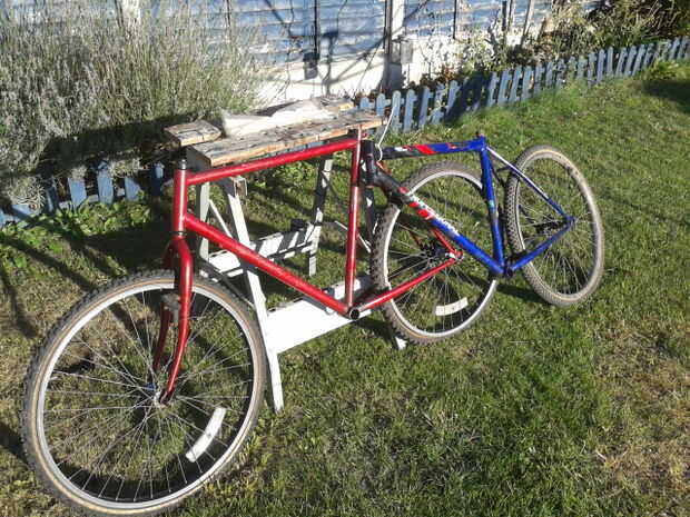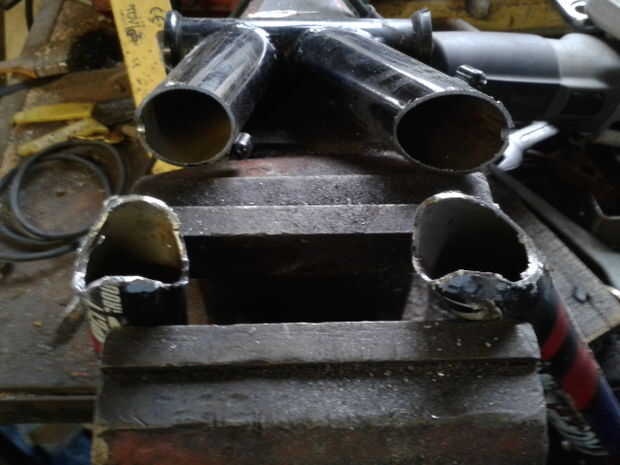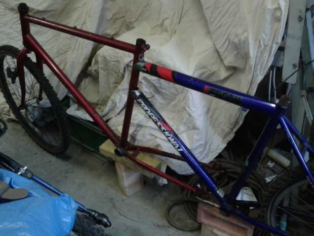 Los cuadros que tengo de ebay fueron una lucha a como habían sido almacenados fuera de la tira. Para conseguir la silla de montar de correos y parte inferior soporte tazas a tenían que soldar piezas de acero de chatarra con ellos para que los podía desenroscar del marco (creo que la temperatura de la soldadura tiene un efecto que se agrieta en los componentes oxidados para arriba). pero finalmente tuve dos strippped Marcos. Pegué dos ruedas en el marco de que el frente para obtener la altura de ellos derecho posterior en la parte posterior! Después de colocar al lado del otro y tratar el asiento me dio mi cuñado me rekoned que el marco posterior debe ser 17 pulgadas asiento tubo a tubo del asiento. Me esta había marcada en el armazón y utiliza un serrucho para cortar a través del marco. Como era una sierra barata lo pronto quemado sobre a medio camino a través de cada lado. Ahora usé una sierra para cortar la cabeza del tubo luego finlandés de con mi amoladora angular hasta que tuve un buen ajuste en el tubo del asiento del marco frontal.