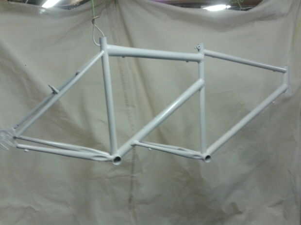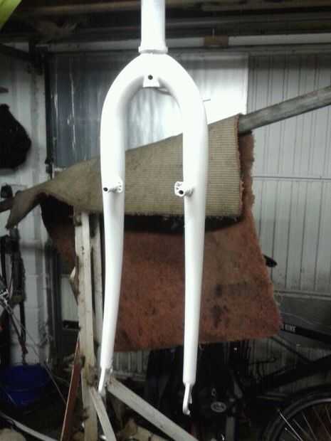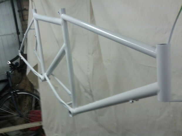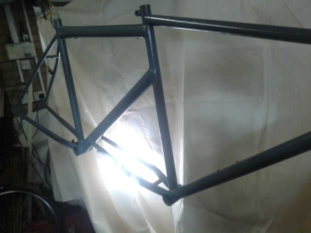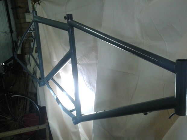Para las nuevas guías de cable hacksawed algunos de uno de los bits de marco de donante que tengo ahí. Estos se presentaron a uo limpio después soldado con autógena el tubo superior en el mejor lugar. Siguiente paso fue aplicar la pintura. Hay un montón de instructables que describe cómo pintar un marco de ciclo que explicarlo mucho mejor de lo que nunca pude por lo que no se entrar en mucho detalle aquí. Primero frote el armazón con papel wetndry luego cebar luego cuando seco rubagain con más fino wetndry papel luego en la parte superior color capas. No el mejor trabajo de pintura pero no voy a entrando en cualquier espectáculo con él!!!!!!