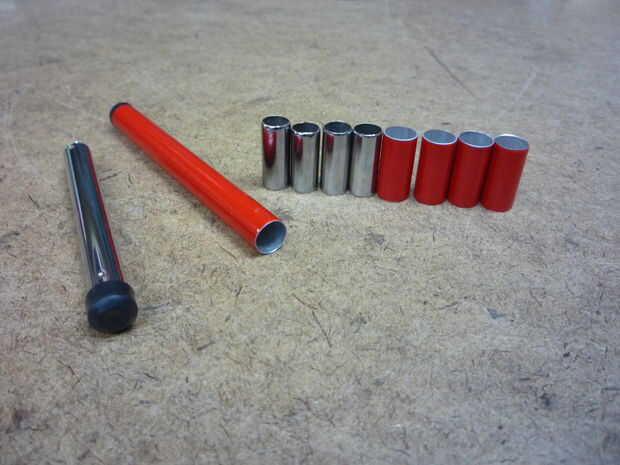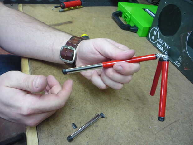 El trípode de la tienda de dólar poco será corte para arriba y para los separadores para el altavoz cubiertas en este paso.  Esto podría ser sustituido por cualquier material tubular de un similar diámetro (1/4" ish).