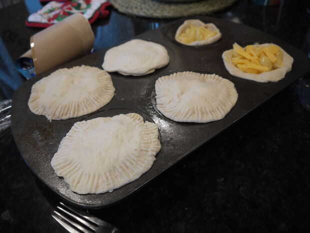 Aplaste los bordes con un tenedor y luego hacer pequeños cortes a lo largo de la parte superior, escriba sus iniciales o lo que quieras, caramba, en un corazón o un muñeco de nieve, lo que quieras!