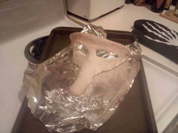 Útil Tip hornear la mascarilla durante 5-7 minutos, retire del horno y permitir una refrigeración. ASEGÚRESE DE QUE LA MÁSCARA ESTÉ COMPLETAMENTE FRÍA!!!! La máscara será más difícil, pero lo suficientemente flexible para colocar en tu cara y a sus propios contornos del molde. También puede realizar este paso una segunda vez para asegurarse de que la estructura de la máscara está intacta.