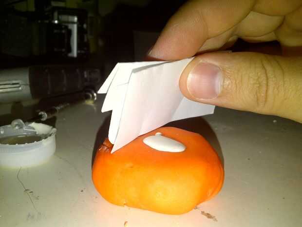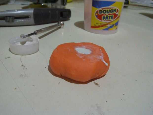 Usando una tarjeta de nota, o algún otro borde recto, raspe cualquier material que parece ser excesiva. Desea que la parte nueva para tener un poco más material que el original. No el doble.