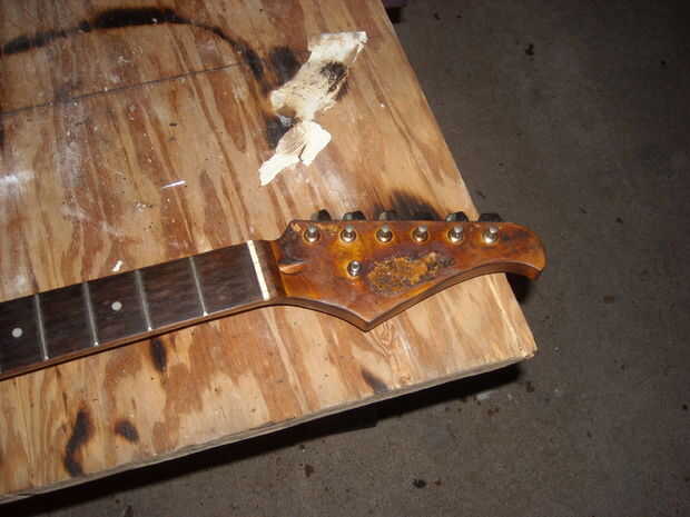 Si cualquier parte de este instructable es peligroso o podría arruinar la guitarra, eso es todo! Mientras se quema la guitarra Asegúrese de seguir. Si su fuego vas lento. También en el cuello, hacerlo en pasadas rápidas. La mejor manera de describir el proceso de grabación es como pintura no como dosificación en gasolina.