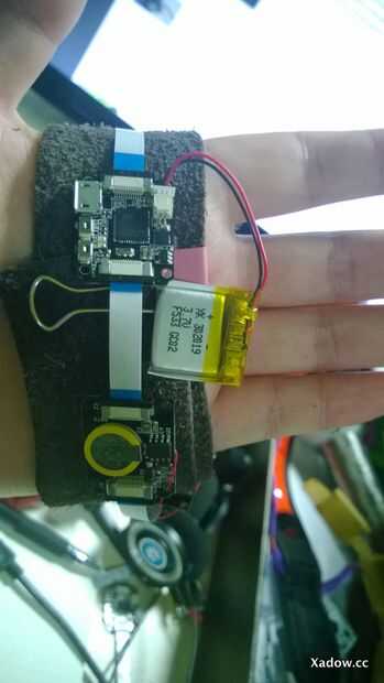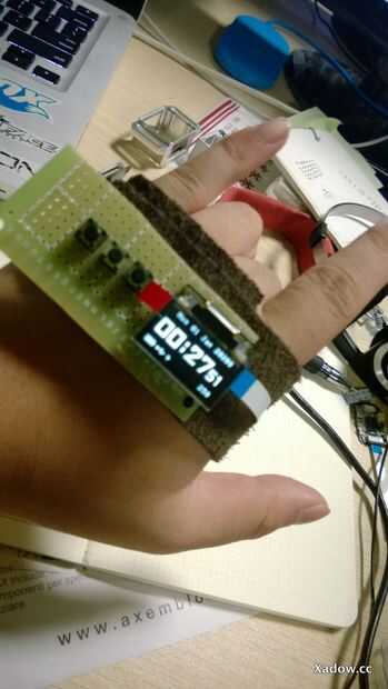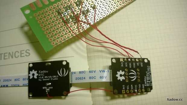 Un cable puente. que deben prestar atención. Hay dos veces en el módulo RTC, pero sólo uno de ellos aparecerá en la parte trasera del tablero: INTB. La lógica principal es: RTC y botón le envía INT al MCU y OLED cambia en función de la interrupción. Así conectarse el INT RX en Xadow interfaz compatible.