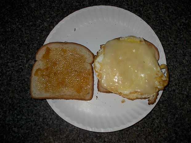 experimento un poco de aburrimiento, estaba considerando hacer un huevo frito de mi sandwich y el pan parecía tan aburrido...Curiosamente este experimento fue un éxito inmediato y realmente más fácil que usar la bandeja por el entusiasmo de la encime