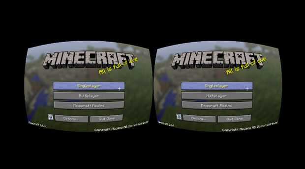 - Iniciar el Minecraft. Si tiene éxito, será recibido con un menú y un botón para encender el modo VR. Activar modo VR y jugar con la configuración hasta los ojos se sienta cómodos.