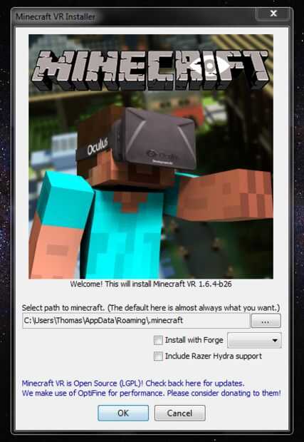 - Después de ejecutar al menos una vez 1.6.4, cierre de Minecraft y descargar el mod de Minecrift desde aquí: http://www.mtbs3d.com/phpbb/viewtopic.php?f=142&t=...