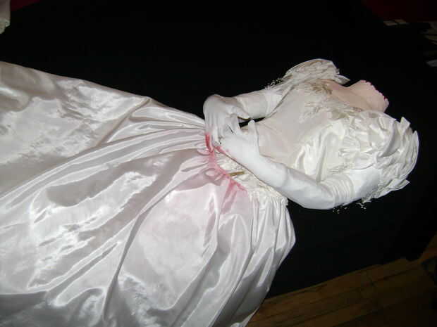 Para las manos y brazos, crear el contorno de las manos y los antebrazos de alambre. Asegure el cable al maniquí y ponga en sus guantes de ópera. Coloque las manos por lo que se ven como que está sosteniendo la cabeza. Usted puede llenar los antebrazos por relleno de los guantes de bateo o papel. Para puntos adicionales le dan un anillo!