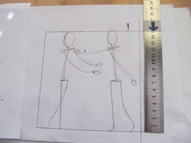 preparación-Pin ropa-Color de pintura o clavos acrílico-Cepillo-LápizPaso 1: Utilizar lápiz para dibujar un traje para el novio y el vestido de novia. Se deben pintar para la novia un collar y un blush.Paso 2: Pintura de color para la novia y el novi