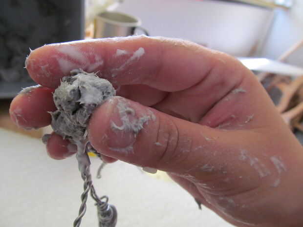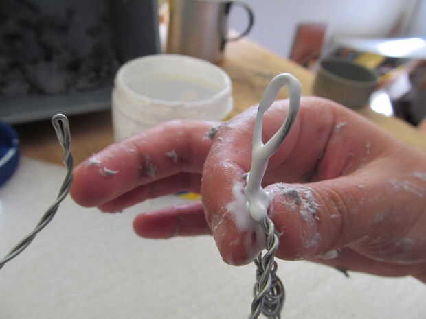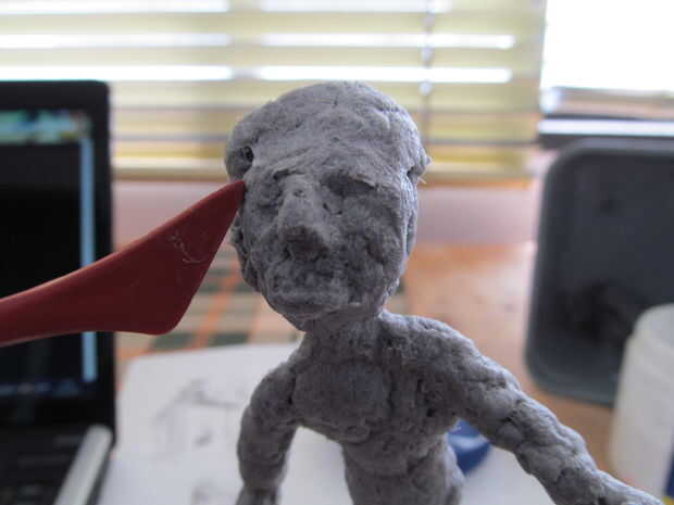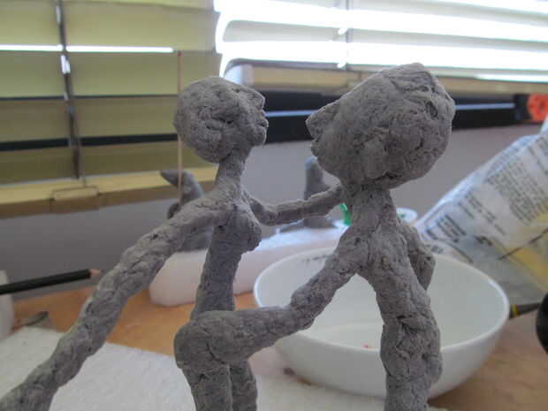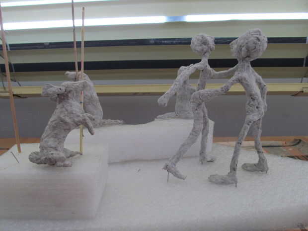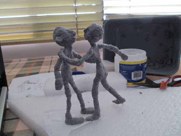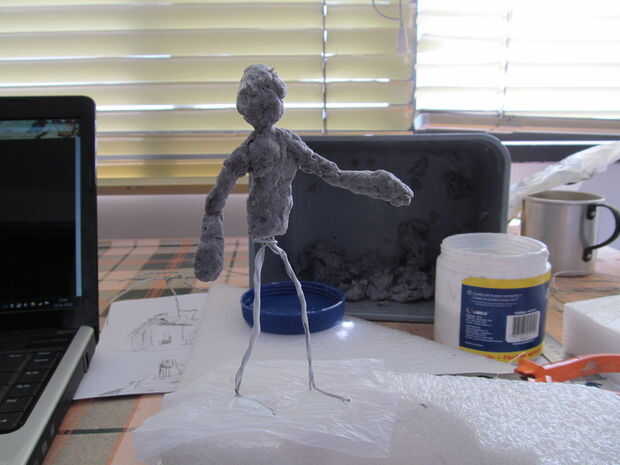 Una vez que la estructura completa, agregar pegamento pva y papel maché. Hacer los detalles con un