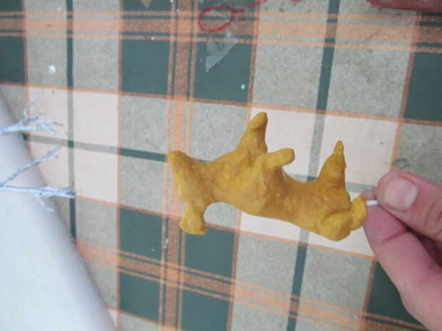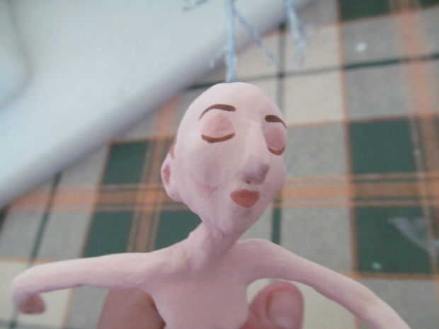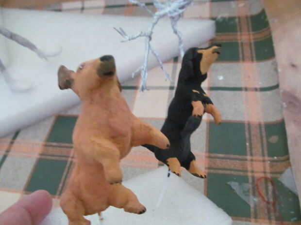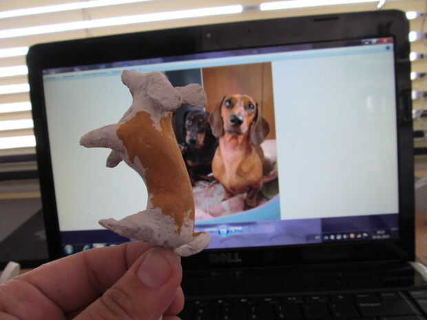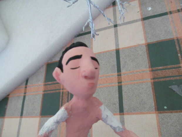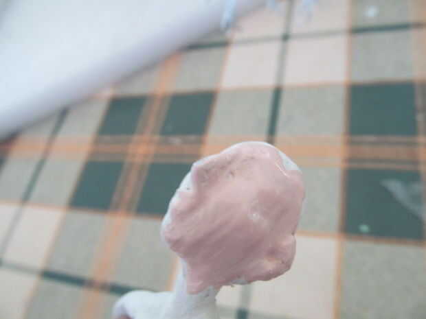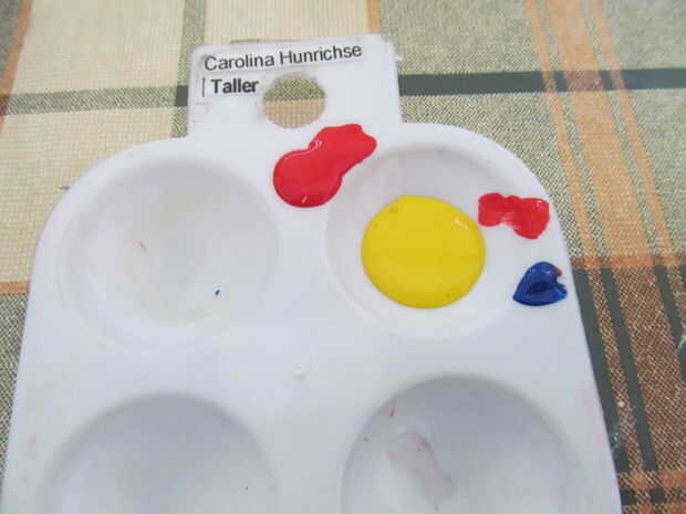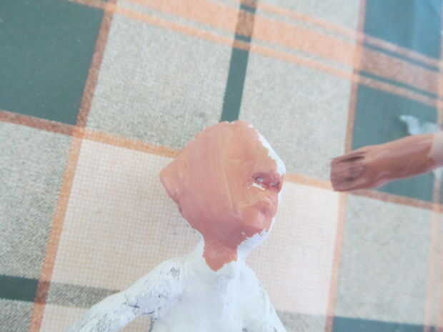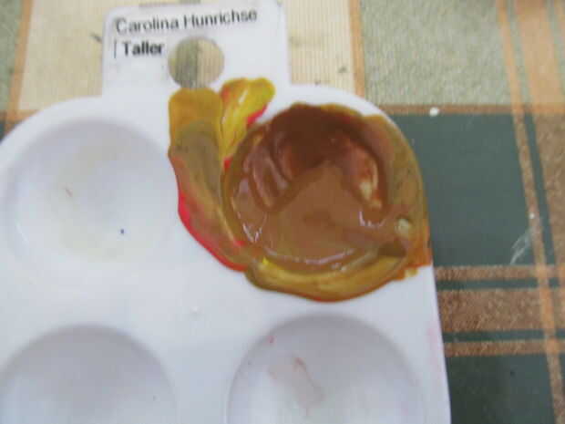 Hacer un color carnoso. Azul, amarillo y rojo para un color de la mezcla y luego añadir blanco para hacer los tonos correspondientes. Para el perro hice un castaño pero con más amarillo. Añadir algunos detalles de maquillaje también.