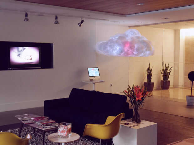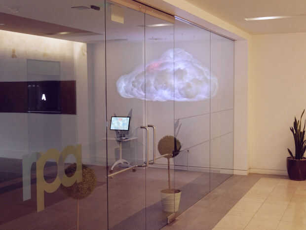 Santa Mónica, California, 05 de septiembre de 2013 – la escucha nube (#ListeningCloud) es una escultura de luz suave basadas en datos que visualiza la conversación social de los medios de comunicación en tiempo real. Creado por un grupo de creativos y tecnología asociados a Agencia RPA e instalado en el vestíbulo de la empresa, supervisa continuamente el zumbido de las redes sociales alrededor de las marcas del cliente. Cualquier momento hay tweets, hashtags, le gusta o comentarios acerca de un cliente, las tormentas de la nube con un rayo multicolor que corresponde a los canales de diferentes medios de comunicación social.