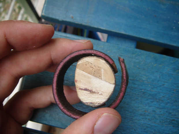 3. corte por la mitad (horizontal) un pedazo de un viejo cuero de la correa lo suficiente para envolver alrededor de