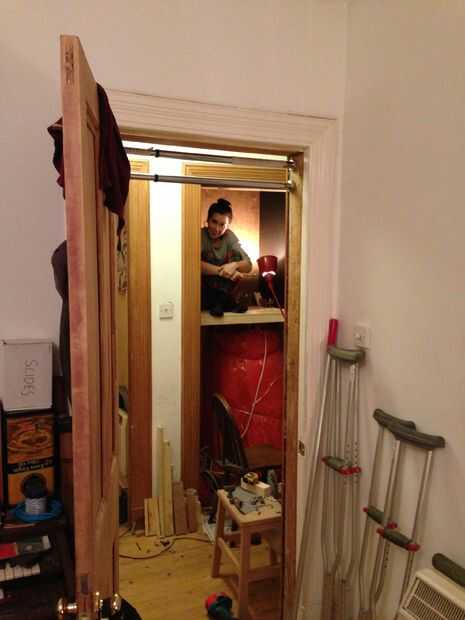 Ver como nuestro armario desordenado, sin usar la caldera se transforma en una oficina funcional y juguetón. Una ventaja adicional es que la caldera mantiene acogedor en el invierno! Guantes sin dedos no más al escribir...