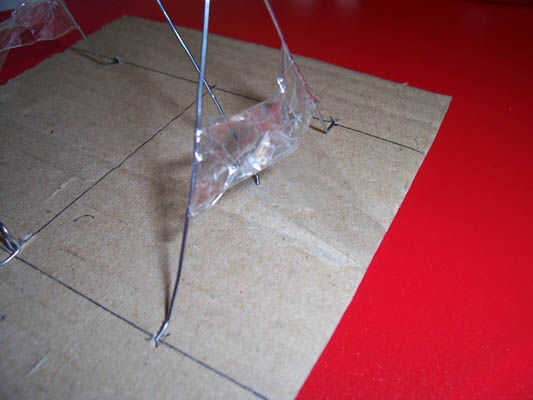 Esto es un poco incómodo pero asoman los extremos de enganche del eje a través de los ojales en los soportes, luego doblar los ganchos abajo con los alicates.