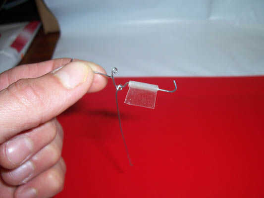 Tomar el eje e introducir a través del lazo en el brazo (no el ojal) para que se sienta en el V. Envuelve Cellotape alrededor del árbol de ambos lados de la V para darle algunos grueso (para que no deslice en el lugar).