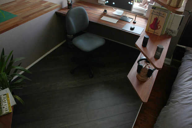 También construí un piso elevado para definir con mayor precisión la "zona de oficina". La idea es conseguir una alfombra en la zona"dormitorio" para amplificar aún más el contraste.