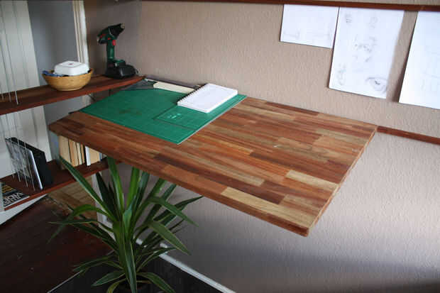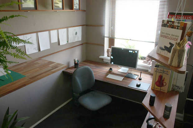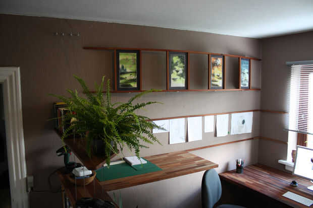 esta es mi oficina que construí durante el verano. Vivo en un apartamento de dos habitaciones, lo que significa que tenía que construir la oficina en el dormitorio, así que decidí trabajar en definir con claridad los dos tipos de espacios. El marco de los estantes la oficina disparando directamente hacia fuera de la pared, colgado de los cables, que ayuda a dar la mahogni-madera oscura, pesada un aspecto más ligero. He intentado aplicar esta expresión a las tablas, eliminando todas las conexiones a tierra. El espacio de esta manera depende de tipo de slized horizontal, con cada capa que representa un nivel diferente de la oficina, con diferente funcionalidad (mesa de computadora/dibujo, mesa de trabajo y archivo).
