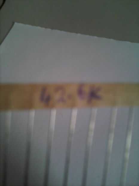 Esta es la carta que obtuve pruebas cada resistor en cada paquete. El resultado es el valor medio para cada archivo de resistencias. k representa mil. El número entre paréntesis es el número de expediente. El número junto a ella es el valor resistivo.