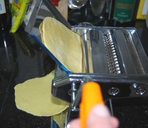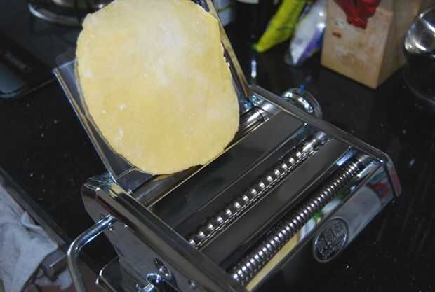 Tomar un pequeño trozo de masa y empezar a presionar con la máquina de pasta en el n º 1
