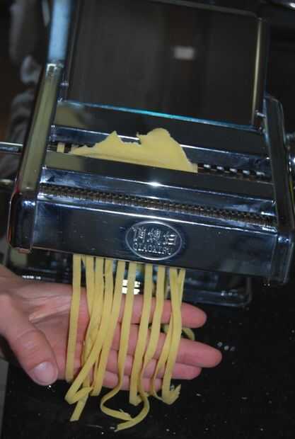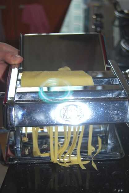 Ahora Introduzca la masa en la sección de tagliatelle y comenzar a rodar hacia fuera sus tallarines!