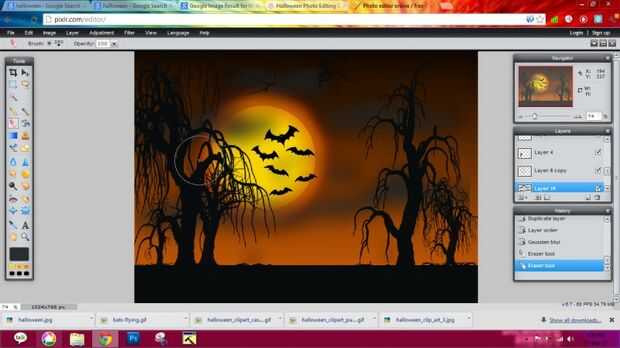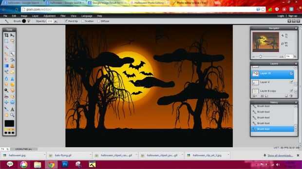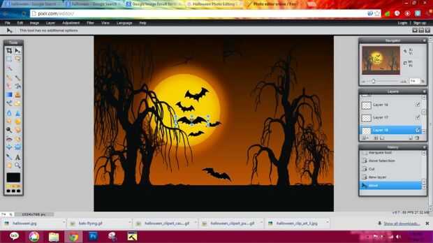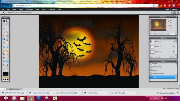 3) agregar algún gato con ojos rojos, sentada en el árbol