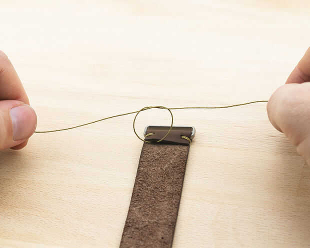 • Comience con un nudo de derecha sobre izquierda y tire firmemente bajo el pliegue en la piel.