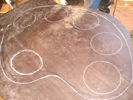 una paleta de madera con una superficie de cristal que uso para la pintura al óleo. En TechShop Chandler, www.techshop.wsPaso 1: fuentes de Para este proyecto he comprado 2 x 1 x 2 pino o chopo, contrachapado de abedul de 1/8 de algunos y una lámina