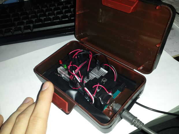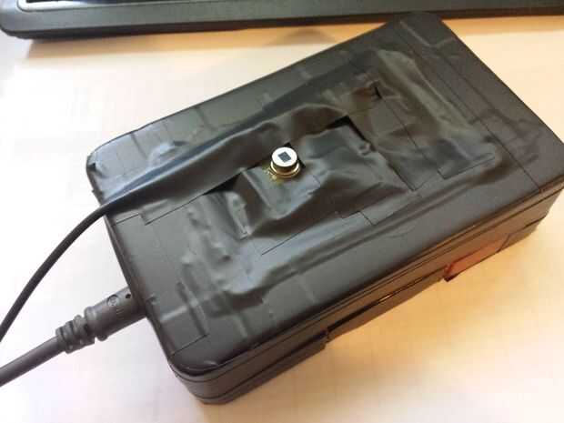 Al poner todos los componentes en la caja, asegúrese de que el sensor de movimiento hacia el agujero que era corte de la caja. Una vez que todo lo ocupa y luego conectado, utilice la cinta eléctrica para asegurarse de que todo lo mantiene en su lugar y no se desconecta.