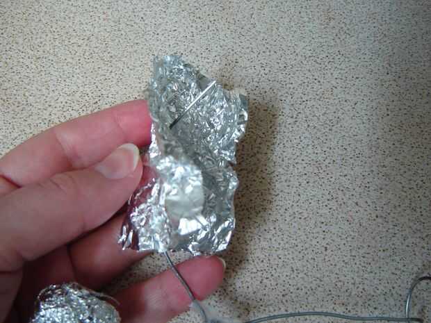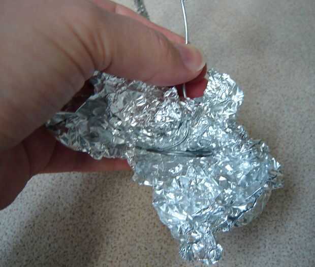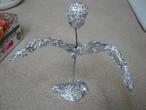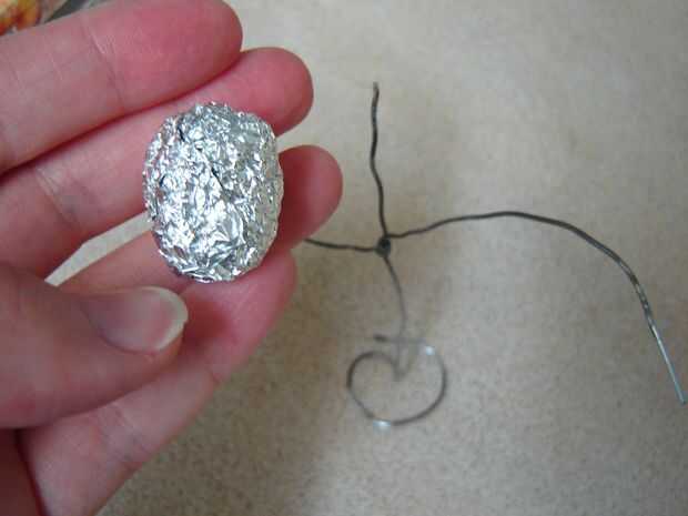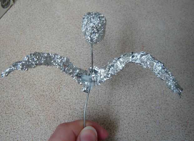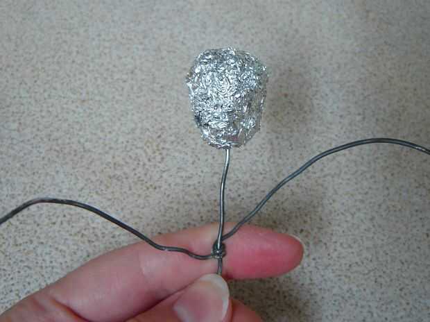 • Rodar para arriba una bola de papel aluminio para formar la cabeza y lo pegan en la parte superior el alambre.