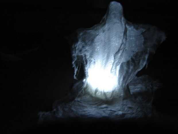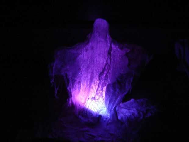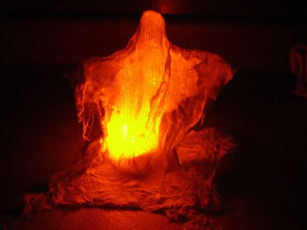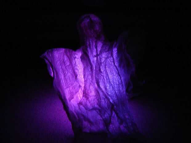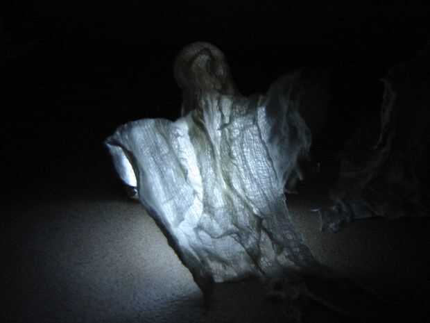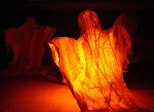 Estopilla da los fantasmas una mirada etérea gasa que se ve muy bien cuando pegue una luz debajo de.  Té sin llama luces, LEDs pegadas a las baterías, o incluso Navidad luces funcionan bien para esto.