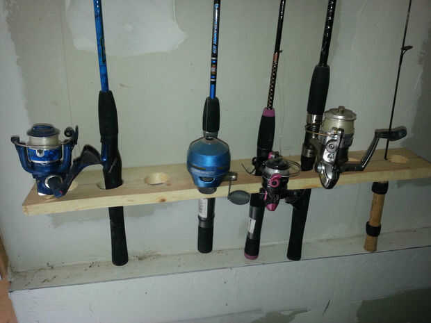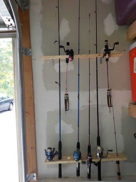 Se trata de un montaje de poste de pesca muy fácil para hacer. Es ideal para garajes o cobertizos. Tuve un lugar perfecto para este proyecto y la madera poniendo alrededor. Además la madera necesita 4 L soportes de algunas herramientas arena papel y tornillos. El ancho es de 3 pulgadas pero se puede hacer la longitud lo que quieres para lo que tiene espacio para. Entonces algunos agujeros y montaje tienen sus cañas de pescar fuera del camino y organizado. Si lo desea puede pintarla hacerlo antes del montaje. También podría añadir un inferior madera para postes de pesca de hielo mina colgar boca abajo desde la parte superior y se sientan en buena.