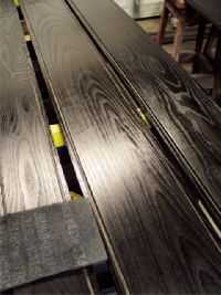 3. Cuando esté listo, la mancha la Junta a lo largo de la veta con un cepillo de espuma. Usted tendrá que hacer por lo menos 2 capas o bien no se verá bien.