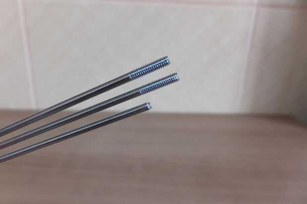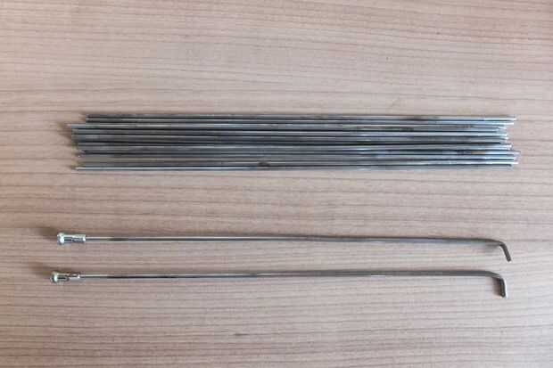 Punta pro: Necesita 2 radios con hilos intactos en un extremo y curva de 90° en el otro así que corta unos 5-10mm (1/16 - 3/8 pulgadas) más largo que el resto, por favor, Téngalo en cuenta.