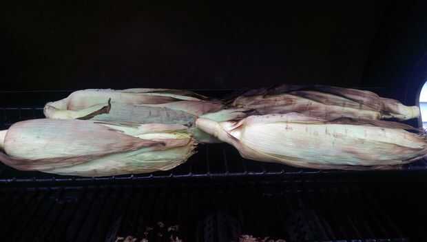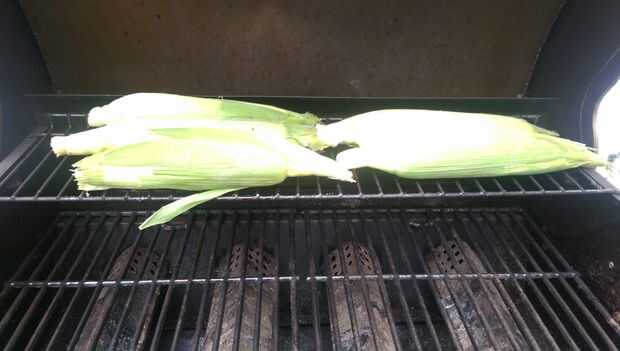 Lugar empapado de maíz en la mazorca directamente en la rejilla superior de la parrilla. Usted querrá mantenerse alejado de la llama directa o las cáscaras a secar y coger el fuego.