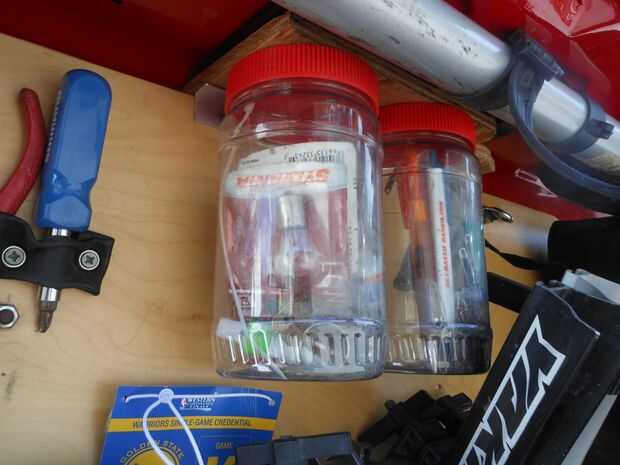 Cualquier envase de plástico trabajarán para esto. Aunque algo lo suficientemente grande como para caber su mano dentro de la voluntad probablemente sean mejores. Dentro de estos tengo:... demasiado cosas a la lista. Esto es donde guardo todas las pequeñas cosas que puede o puede que no necesite cuando fuera de casa.