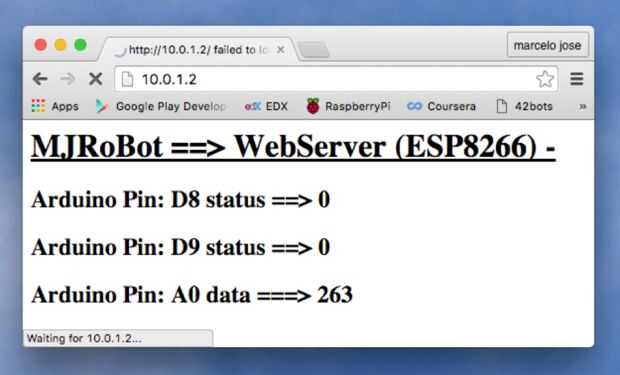 Para entrar en la IP para arriba en el navegador, el ESP montar la página HTML que estaba programada y comenzará a enviar la información capturada en las entradas de la MEGA.