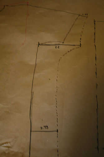 5. a partir de la parte más baja de original escote, crear un nueva, cuello amplio en forma de escote, que se extiende hasta sobre un de media pulgada de la costura del hombro.
