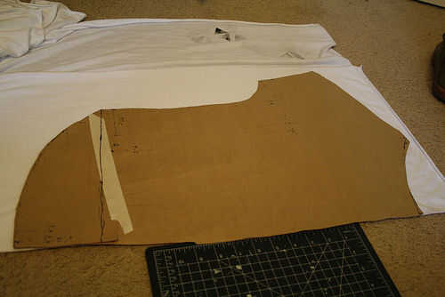 3. doble el patrón a lo largo de la línea que hiciste en el paso 6 del paso 6 (espero que no sea confuso 0_o) la parte delantera de su camiseta voluntad tienen un dobladillo recto.