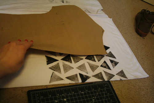 Mismos pasos, excepto que esta vez, cortadas la tela con el patrón revelado, por lo que crear el dobladillo shwoopy!
